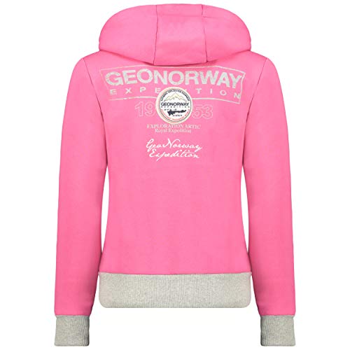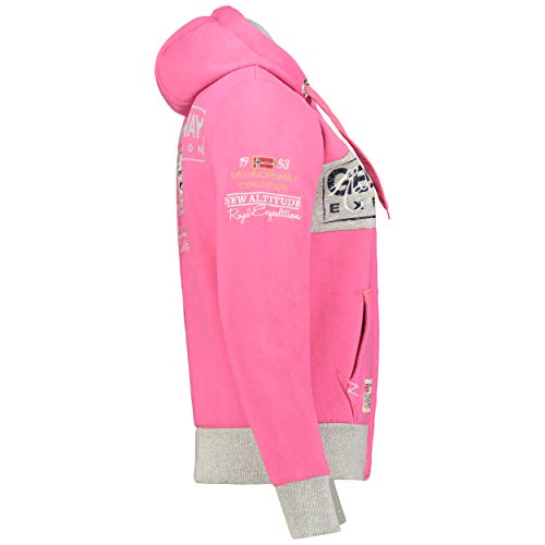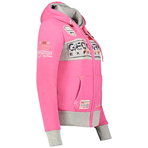 GEO NORWAY Flyer Lady - Felpa Cappuccio Tasche Donna - Felpa Logo Donna - Maniche Lunghe Comfort - Felpa Cappuccio Cotone Sportivo Rosa Flash M
