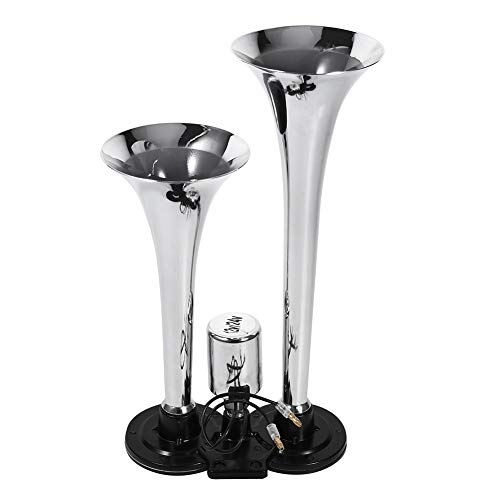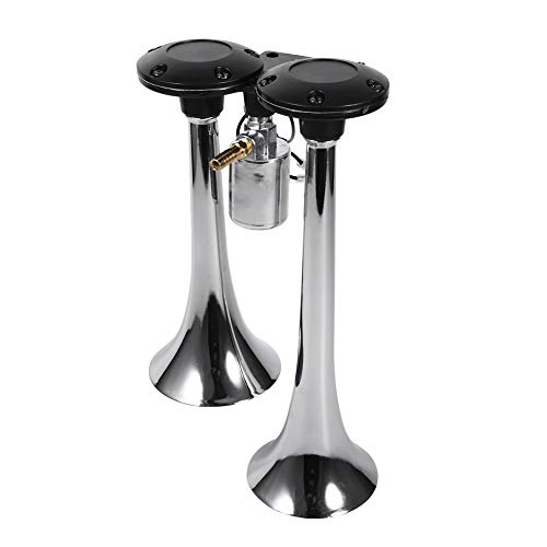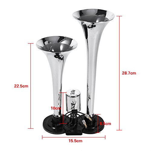 Corno d'aria cromato a doppia tromba con valvola elettrica, base piatta.