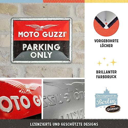 Nostalgic-Art Retro Blechschild, Targhe Vintage, Moto Guzzi - Parking Only - Idea regalo per amanti di motociclisti, in metallo, Design retro per decorazione, 15 x 20 cm