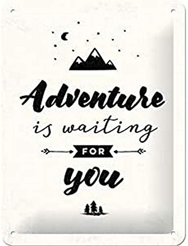 Nostalgic-Art Targa Vintage Adventure is Waiting - Idea Regalo per i nostalgici, in Metallo, Design Retro per Decorazione, 15 x 20 cm