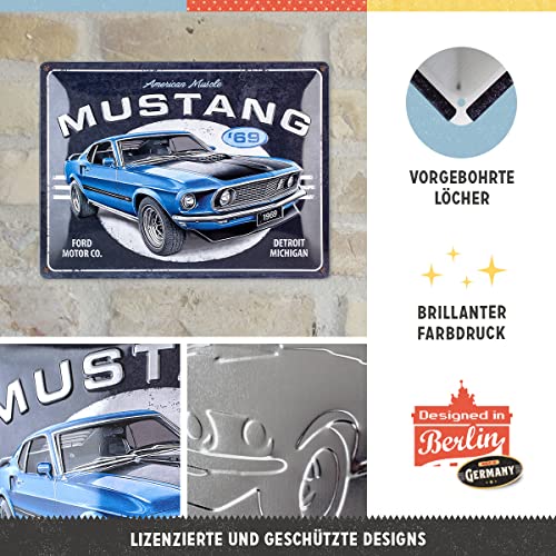 Nostalgic-Art Targhe Vintage Ford Mustang Blue - Idea Regalo per Accessori per Auto, in Metallo, Design retrò per Decorazione, 30 x 40 cm