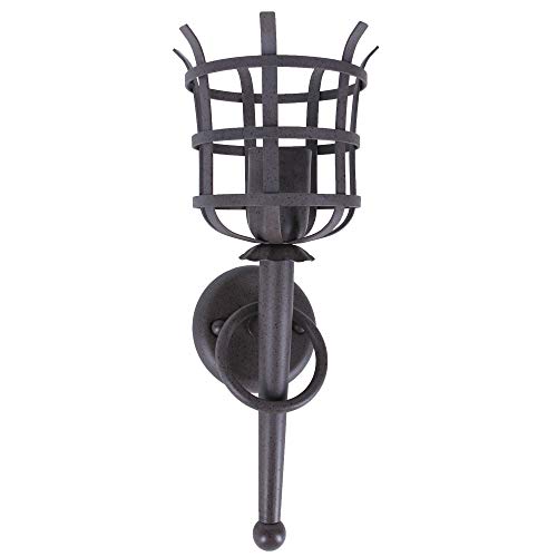 Nostalgico Torcia con Gitterschutz Parete | Fackel-Leuchte Metallo Ruggine | Applique Antico H:3 8cm Ø 15cm | Fiaccola con Versione per 1xE27