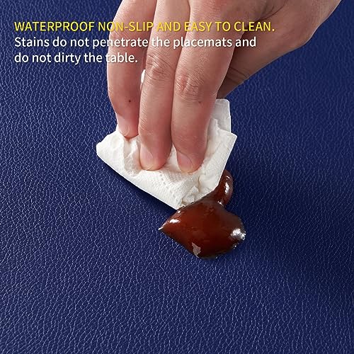 NOSTHEART Tovagliette Americane e Sottobicchieri, Lavabili Tovagliette in Pelle Resistenti al Calore con Bordi Cuciti, Tovagliette in Antiscivolo Impermeabili a Doppia Faccia, Blu Rosso, Set di 6