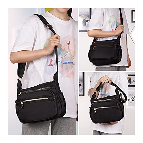 NOTAG Borsa Donna, Casuale Multitasche Borse Tracolla Impermeabile Nylon Borse a Spalla (Nero)