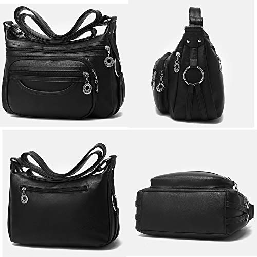 NOTAG Borsa Donna, Moda Pelle PU Borsa a Tracolla Molte Cerniera Tasche Borse a Spalla (Marrone)