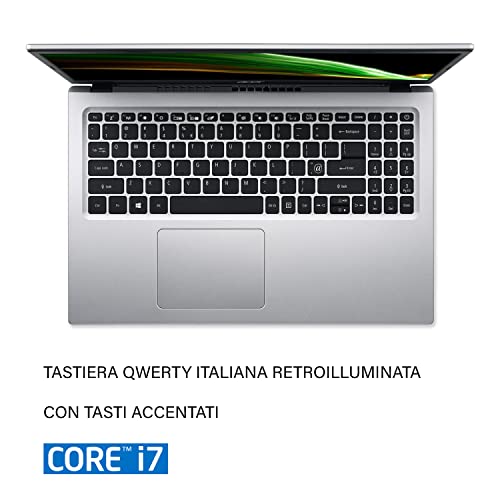 Acer Notebook, Intel i7 1167G7 4Core fino 4.7Ghz, RAM 20 Gb, SSD 512 Gb, 15.6" FHD IPS, Geforce MX450, Tastiera retroilluminata, Wi-Fi 6, lan, hdmi, Win 11 Pro, Suite Office, Pronto all'uso