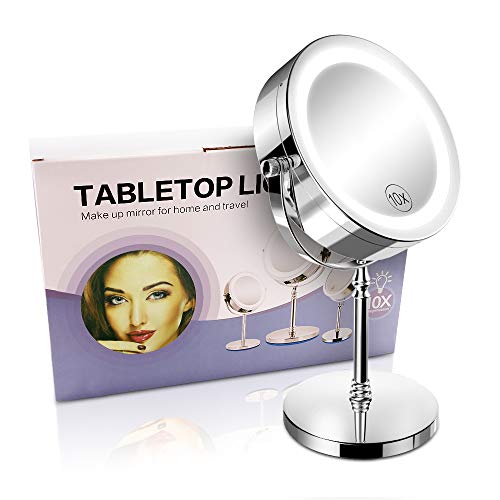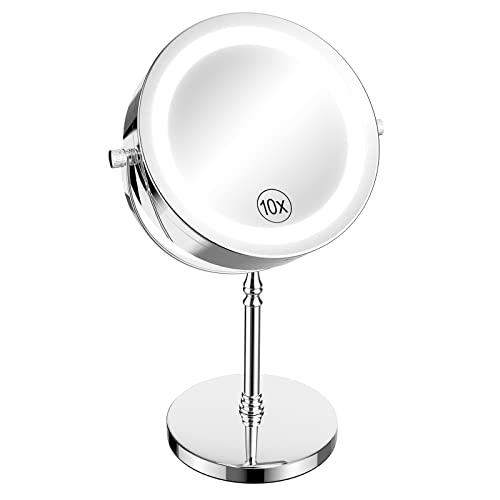 NOTENS Lighted Makeup Mirror Double-Sided 1x/10x Magnifying 18 LED Lights 360 Rotation 7 inch Illuminated Make Up Vanity Mirror with Lights Round Shaped Stainless Steel Polished Chrome Finish