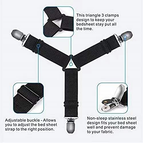 Nothers 4 Pezzi Triangolo Clip Lenzuola,Cinghie a Triangolo per Lenzuolo da Materasso Clip Lenzuolo Clip per Lenzuola Forte Cinghie di Fissaggio per Angoli Lenzuola, coprimaterassi, Letto o Divano.