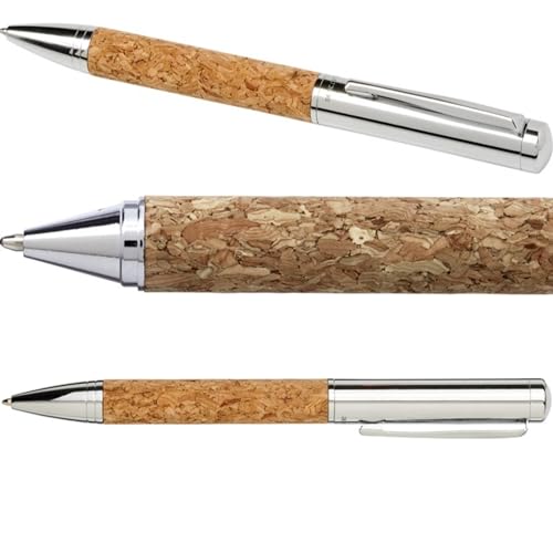 NoTrash2003 Elegante penna a sfera in metallo con fusto in sughero, ottone cromato lucido, elegante penna in confezione regalo