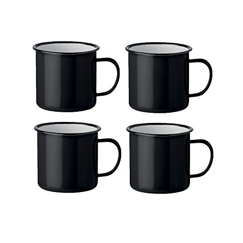 NoTrash2003 Kaffeetasse Becher Mug Coffee Trinkbecher Emaille-Becher Vintage Look Je 350 ml Versch. Farben und Mengen (Schwarz, 4er Set)