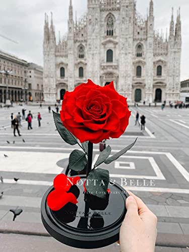 Qualità premium fatta a mano: ogni composizione è stata creata a mano da Notta & Belle. La rosa si trova su un tappetino di legno denso e ha un vetro spesso. Il pallone delle rose può essere rimosso, non influenzerà la durata del fiore. Non usiamo un bulbo di rose, se ha anche solo 1 graffio.