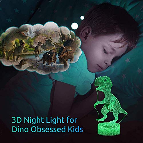 Luce di notte del calcio 3D LED, lampada visiva dell'illusione ottica 3D 7 Cambiare colore Touch & Remote USB tavolo regalo giocattoli decorazioni (dinosauro)
