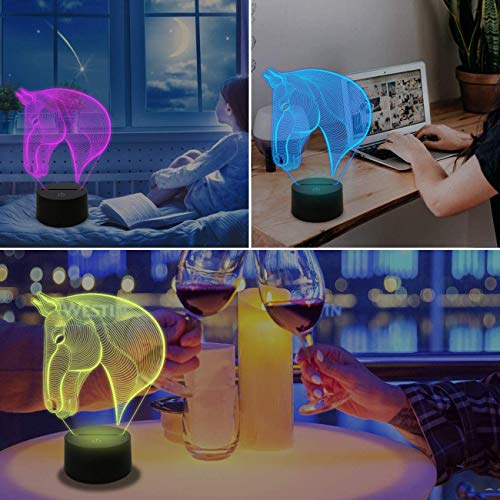 Luce di notte 3D LED, lampada visiva dell'illusione ottica 3D 7 Cambiare colore Touch & Remote USB tavolo regalo giocattoli decorazioni (Testa di cavallo)