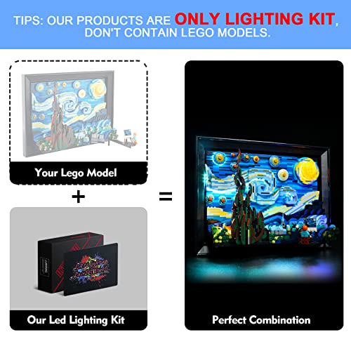 Solo kit di luci a LED, nessun modello Lego. Design unico: progettato per Lego Ideas Vincent van Gogh - La notte stellata, puoi portare il tuo modello Lego The Starry Night da buio a luminoso con il kit di illuminazione, farlo prendere vita. Si prega di notare che solo set di luci a LED. Non include il set Lego.)
