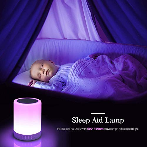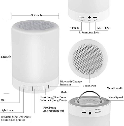 Lampada tattile versatile: funziona come lampada da tavolo con controllo touch, altoparlanti wireless, lettore musicale wireless, vivavoce e luce notturna per il comodino. Si può godere dello spettacolo di luci a LED quando si ascolta musica, ci sono 7 modelli di luce LED.