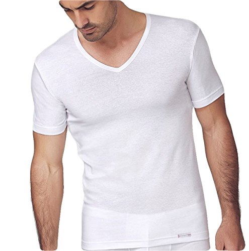 NOTTINGHAM Confezione N. 2 Canottiera Uomo Mezza Manica Scollo A Punta Cotone Costina BIELASTICA - Morbidezza ed Aderenza. Disponibile nei Colori Bianco o Nero