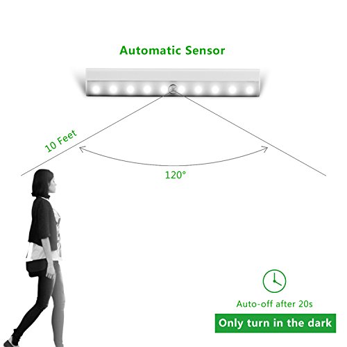 Luce LED Notturna, Axmda Emergenza con 10 LED Luce per Guardaroba a Sensore di Movimento PIR Wireless, Alimentata a Batteria(non incluse) (cool light)
