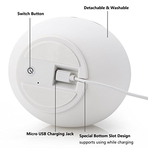 3 modi luminosi e controllo comandi: premere il pulsante di alimentazione principale sul fondo per attivarlo / disattivarlo. Toccare la superficie morbida del silicone per passare dalla modalità calda a luce bianca, a 3 colori statici, alla modalità di respirazione a 7 colori e alla modalità di attesa, rendendola un compagno romantico dolce compagno di neonato. Il sensore di vibrazione particolarmente sensibile consente di controllare le luci a piacere