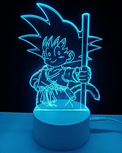 Luce notturna per bambini illusione ottica 3D lampada da comodino decorativa dragon ball telecomando super regalo per bambini (Son Goku Child)
