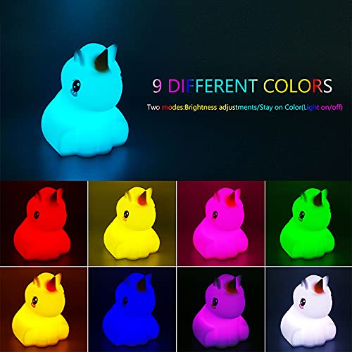 Luce notturna mutevole multicolore: La simpatica luce notturna ad unicorno per bambini con 9 colori, non solo funge da notte dell'infermiera, ma anche come illuminazione decorativa. Lo studio mostra che la luce colorata stimolerà la percezione del colore del bambino, promuoverà lo sviluppo visivo del bambino, migliorerà la memoria dei bambini e l'abilità logica con i bambini controllano il telecomando multifunzione.