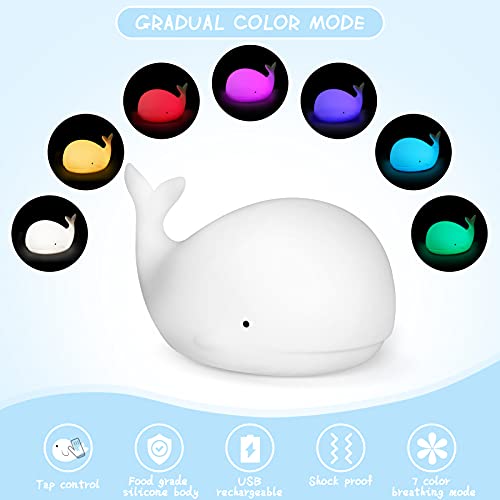 Luce notturna per bambini LUNSY, simpatica luce notturna a forma di balena, in silicone, con interruttore touch, per la camera dei bambini, la camera da letto, soggiorno, regalo di luce bianca calda