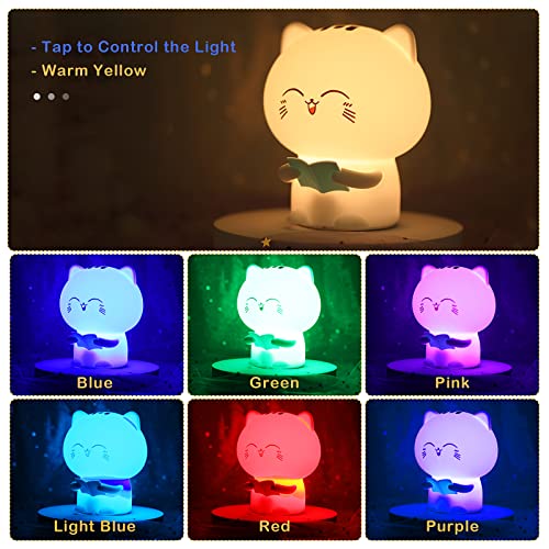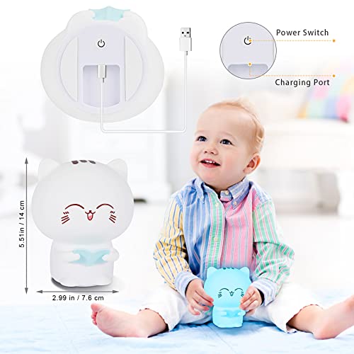Luce Notturna Bambini, 7 Multicolori Gatto Silicone Lampada Notturna per Bambini, Lucina Notte Bambini Ricaricabile LED Luci Notturne per Bambini Cameretta Bambina Regalo Neonato Neonato Regali Natale