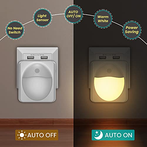 【3 modalità】: Con un interruttore nella parte superiore della luce notturna, è possibile scegliere tra tre modalità di illuminazione (ON, OFF e AUTO). Dimensioni compatte Design che non blocca la seconda presa sul muro. Luce notturna plug-in, plug and play.
