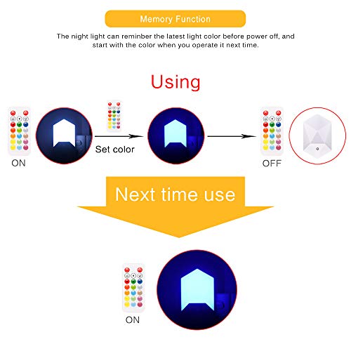 【Modalità Memoria】: le luci notturne memorizzeranno i colori. Quando lo spegni l'ultima volta che lo hai acceso, rimane luminoso quando lo spegni di nuovo. Evita di usare i colori iniziali ogni volta che ti illumini. Inoltre, la luce notturna è dotata di un telecomando, che può facilmente regolare la modalità luce e colore a 16,4 piedi. Puoi sdraiarti sul letto, cambiare la luce quando ti alzi dal letto e regolare la luce nel buio.