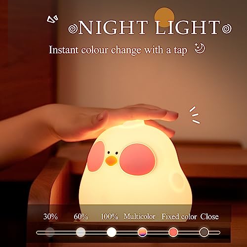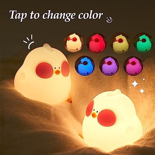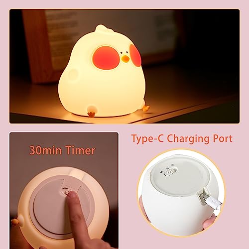 ZVO Luce Notturna per Bambini, Luce LED in Silicone Pulcino con 7 Colori, Lampada con Timer Dimmerabile USB Ricaricabile per Casa Cameretta Compleanno e Regalo di Natale (Pulcino)