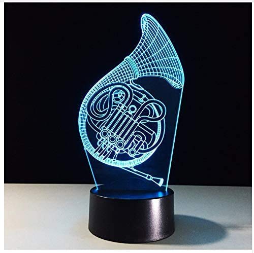 Luce notturna 3D Corno francese Lampada notturna 3D Sassofono Strumento musicale Lampada da tavolo Lampada acrilica colorata Decorazione Illuminazione Fan di musica Regalo 7 colori