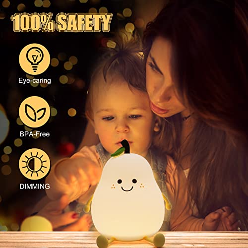 Luce Notturna a Forma di Pera Frutta, Luce Notturna a LED in Silicone, Luce Notturna Dimmerabile USB Ricaricabile con Funzione Timer, con Sensore Touch, Mini lampada da Tavolo per Bambini
