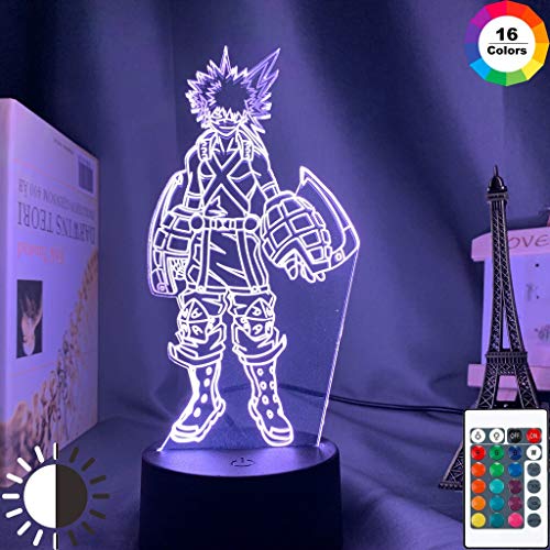 Luce notturna a LED 3D Katsuki Bakugo Figura Camera dei bambini Luce notturna Sensore tattile Illuminazione della stanza Lampada da scrivania regalo Anime My Hero Academia, 7 colori senza telecomando