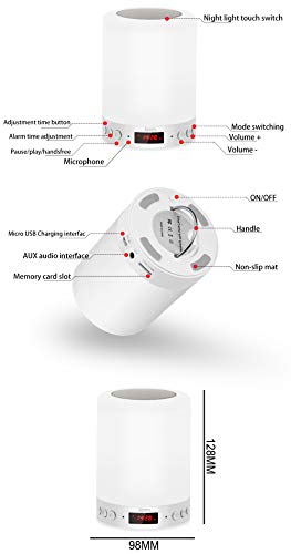 【Design versatile】 Questa lampada da comodino combina musica ed elementi di illuminazione! È più di una semplice luce, è anche una torcia elettrica + altoparlante Bluetooth + altoparlante vivavoce+ orologio + sveglia.
