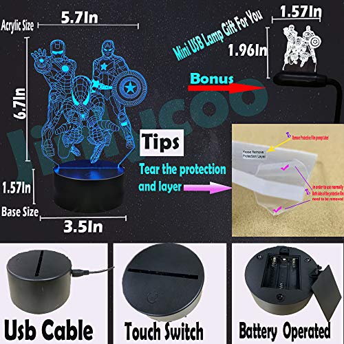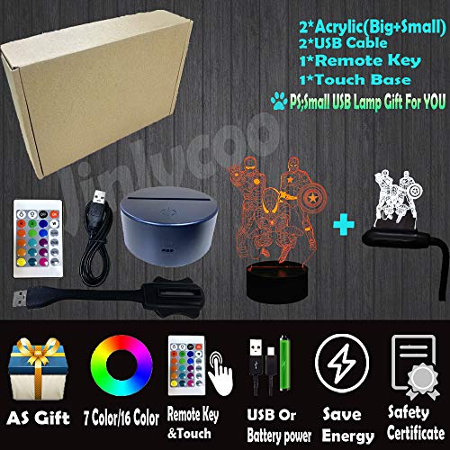 Luce notturna 3D, Lampada da comodino 3D Illusion Movie Comics Capitano America Nightlight per bambini di Natale Telecomando Lampada da tavolo Decor