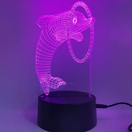 QQY Luce notturna 3D, Lampada da illusione ottica 3D colorata a LED Lampada da tavolo da tavolo con luce notturna USB a sfioramento per i regali dei bambini delle ragazze dei ragazzi (Delfino)