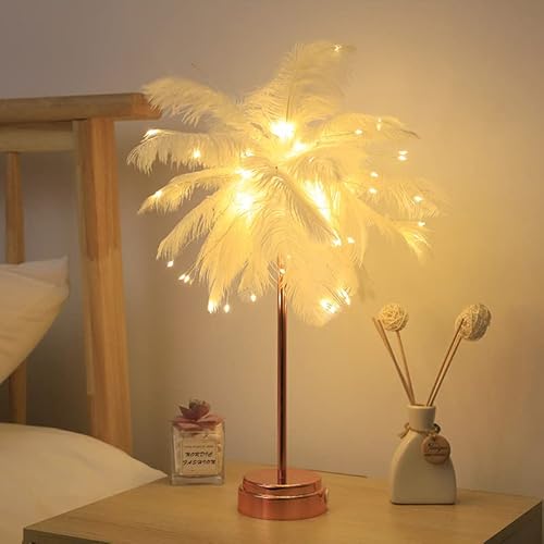 Elegante lampada da tavolo vintage con piume: il design antico e vintage rende la tua casa piena di stile, che può essere utilizzata come oggetto di scena o abbellire l'ambiente familiare. È perfetto per camere da letto, studio, soggiorni e matrimoni. Questa lampada da tavolo con piume è progettata per bambini, fidanzata e famiglia come regalo di fantasia