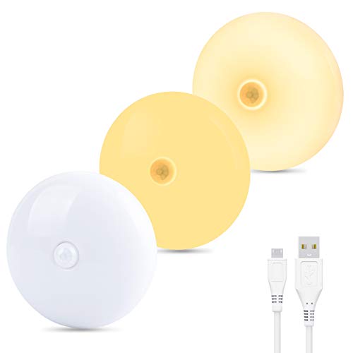 Luce Notturna 3 Luci Notturne Bambini LED Sensore Movimento Ricaricabile Bawoo Armadio Luce Notte Lampada Magnetica Biadesiva 3 Modalità AUTO ON OFF 12 LED Bianco Caldo 2 Luminosità Dovunque Wireless