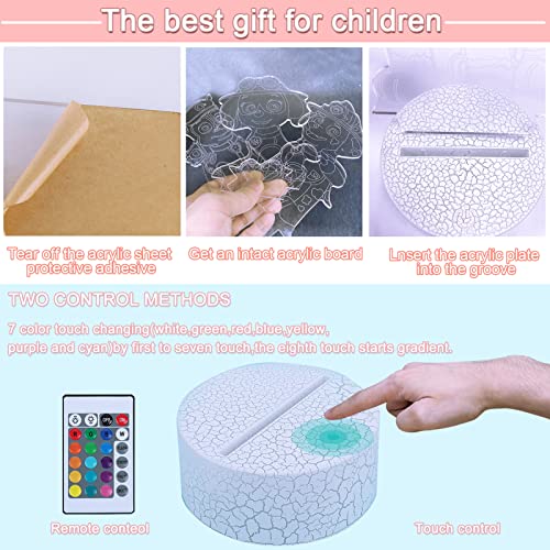 【Luce notturna per bambini】 Include 3 diverse piastre acriliche, 1 base aggiornata, 1 cavo USB, 1 telecomando. Con una maggiore trasmittanza luminosa e un migliore effetto 3D, è possibile sostituire liberamente l'attacco della lampada LED con il modello preferito, fresco e interessante ogni giorno, pieno di gioia.