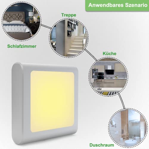 Ampiamente Usato: 2 * LED Night Light. Perfetto per comodino, asilo nido o scuola materna, asilo nido, soggiorno, bagno, corridoio, tromba delle scale, cantina, garage sotterraneo e ovunque tu abbia bisogno di guide luminose senza disturbare gli altri intorno a te. È il regalo perfetto per i tuoi bambini, amici e familiari