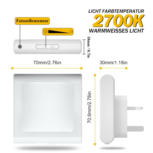 Durevole e Sicuro: Realizzato in materiale speciale ABS, il guscio è resistente al fuoco e agli urti, durevole e sicuro. Ogni luce notturna è dotatadi lampada a LED di alta qualità, con una durata fino a 50.000 ore