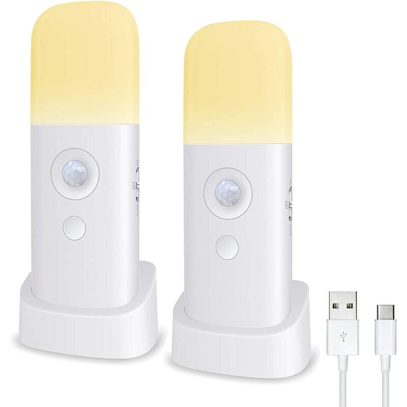 Nuova luce notturna - I nostri clienti utilizzano la luce notturna come ausilio visivo per bagni, corridoi, scale e altri potenziali ostacoli o pericoli. Grazie al suo design innovativo e carino, queste luci notturne portatili sono scelte anche per le camerette dei bambini o degli adulti, portando il calore della luce nell'oscurità. 【Luce con sensore di movimento per interni】 Utilizza un costoso infrarosso passivo sensore di movimento per rilevare il movimento fino a 20 piedi di distanza in un'area di 120 gradi e si accende automaticamente in scenari di scarsa illuminazione, spegnendosi dopo 25 secondi se non c'è luce ha più attività. Ci sono 3 modalità on/off/automatiche per le tue diverse scelte. 【Batteria ricaricabile integrata da 2000 mAh】 Non è necessario acquistare e sostituire frequentemente batterie AAA non riciclabili. Questa luce notturna con batteria ricaricabile integrata ad alta capacità, supporta un uso portatile più lungo con una porta USB che può ricaricare facilmente