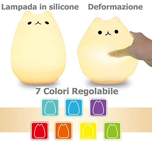 Luce Notturna LED, SOLMORE Lampada per Bambini Gatto Luce Comodino Luce 7 Colori Diverso Toccare Controllo Silicone Gatto Luce Decorazioni Luce Notturne per Camerette,Letto Bambini(Tramite cavo USB)