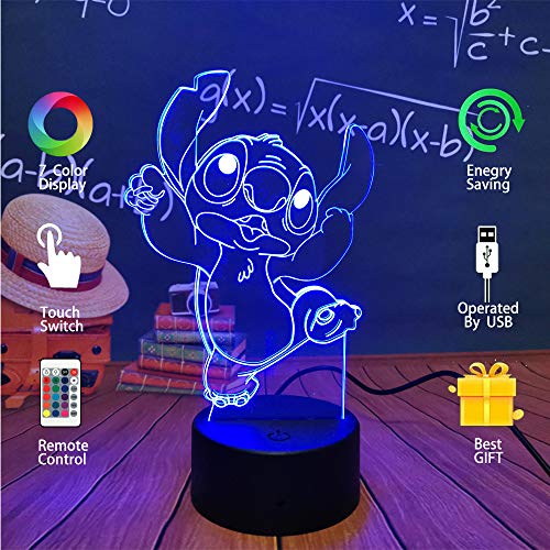 Luce notturna LED Stitch, 16 colori 3D Visual Desk Lamp Decor, Lilo & StitchTouch Lampada notturna per bambini con telecomando USB, Luce di Natale per la vigilia di Capodanno per adolescenti