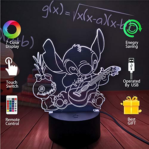 Luce notturna LED Stitch, 16 colori 3D Visual Desk Lamp Decor, Lilo & StitchTouch Lampada notturna per bambini con telecomando USB, Luce di Natale per la vigilia di Capodanno per adolescenti
