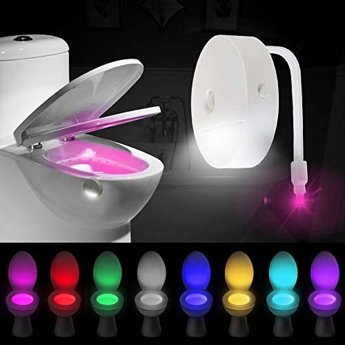 Luce Notturna da Toilette, Vimmor 8 Colori Lgienici WC Bango LED Lampada Notturne con Sensore di Movimento, Batteria non Inclusa