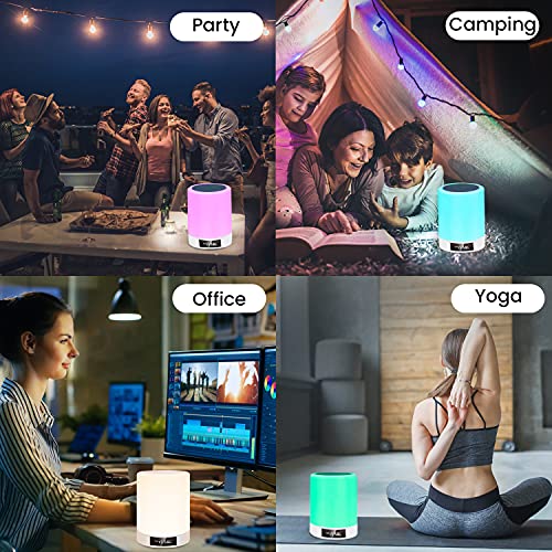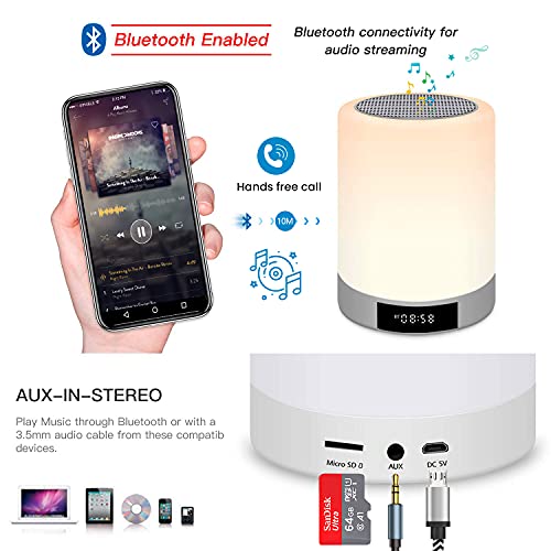 Luci notturne Altoparlante Bluetooth, Ranipobo Touch Sensor Lampada da comodino con sveglia, lettore musicale MP3, radio FM, Touch Control Lampada LED dimmerabile luci calde e 7 colori