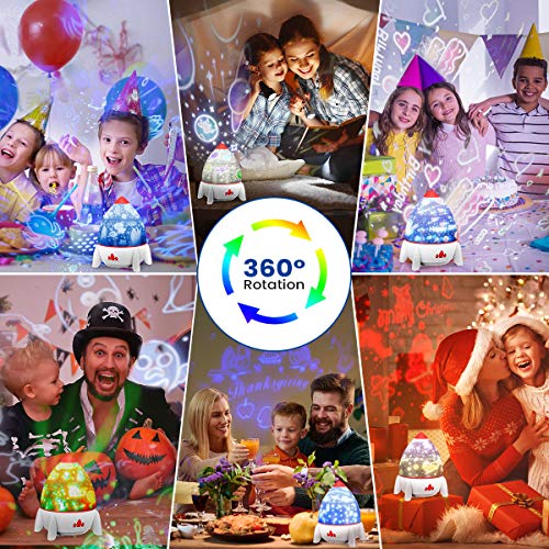【Effetto di rotazione e ricarica USB】premere il pulsante di rotazione per avviare la funzione di rotazione a 360°. La meravigliosa atmosfera può stimolare la curiosità dei bambini e migliorare la loro immaginazione e creatività. La luce notturna viene alimentata tramite USB e richiede solo circa 3-4 ore per caricarsi. Con la funzione di spegnimento 1H, la lampada del proiettore può accompagnare i bambini in un sogno tranquillo e dolce.