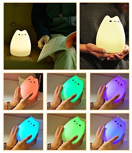 Luci notturne per bambini,SUAVER Lampada gatto di ricarica silicone morbido multicolore night light,Luce Notturna LED controllo sensibile luce decorazioni per bambini(Stile A)