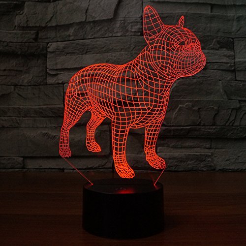 Luci notturne 3D Bulldog francese, motivo cane, illusione con 7 colori cani, LED, con funzione touch, lampada da tavolo USB, regalo per bambini, decorazione giocattoli