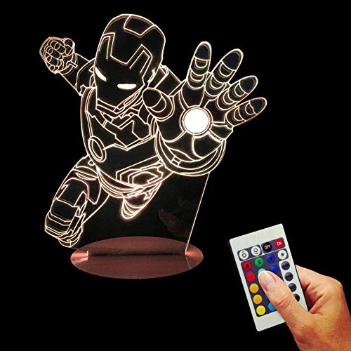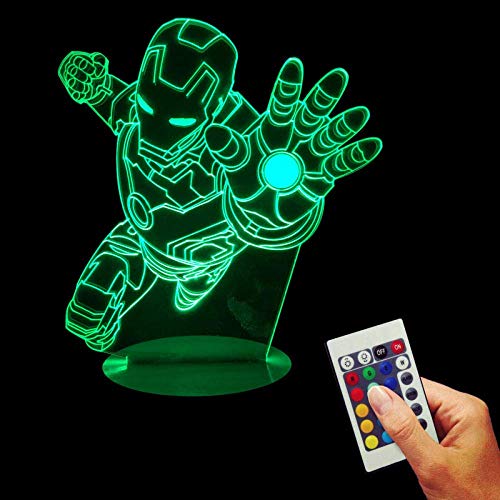 Luci Notturne 3D Vendicatori Iron Man Atmosferico Illusion Lampada Da Tavolo Telecomando In Legno 7 Colori Decorazione Per La Casa Regalo Di Festa Per Bambini